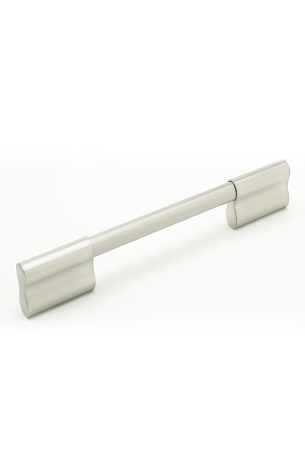 This decorative satin nickel cabinet pull offers the perfect finishing touch.