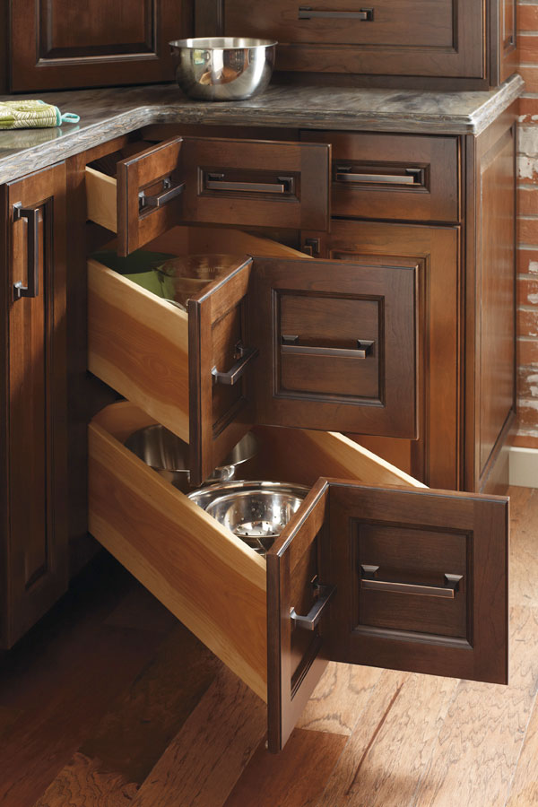 Our Three Drawer Corner Cabinet offers a unique storage opportunity, ideal for capitalizing on today's trend toward drawer storage.