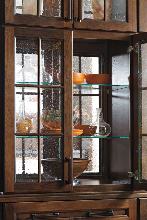 Cabinets with glass shelves add a gentle elegance and really let light filter through, especially if you choose to add interior lighting to the showcase cabinet.