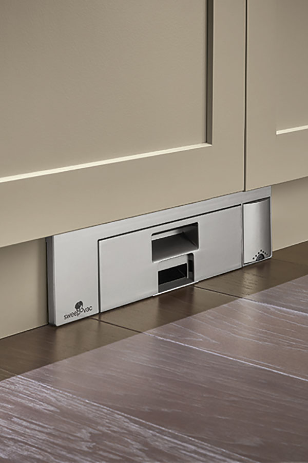 Toekick the dirty dustpan habit. Disarmingly simple, decidedly powerful - this 120V Toekick Vacuum cabinet is activated by a foot-operated switch, with sweepings stored in an easily removable, disposable bag.